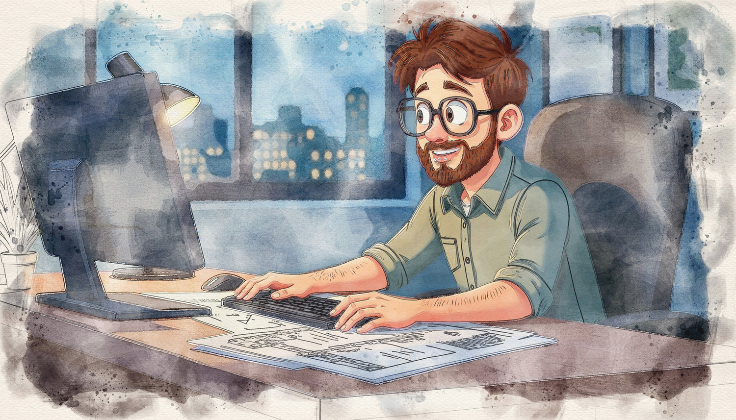 An architect with a creative vision and a busy life, constantly navigating the fine line between career demands and cherished family moments.
