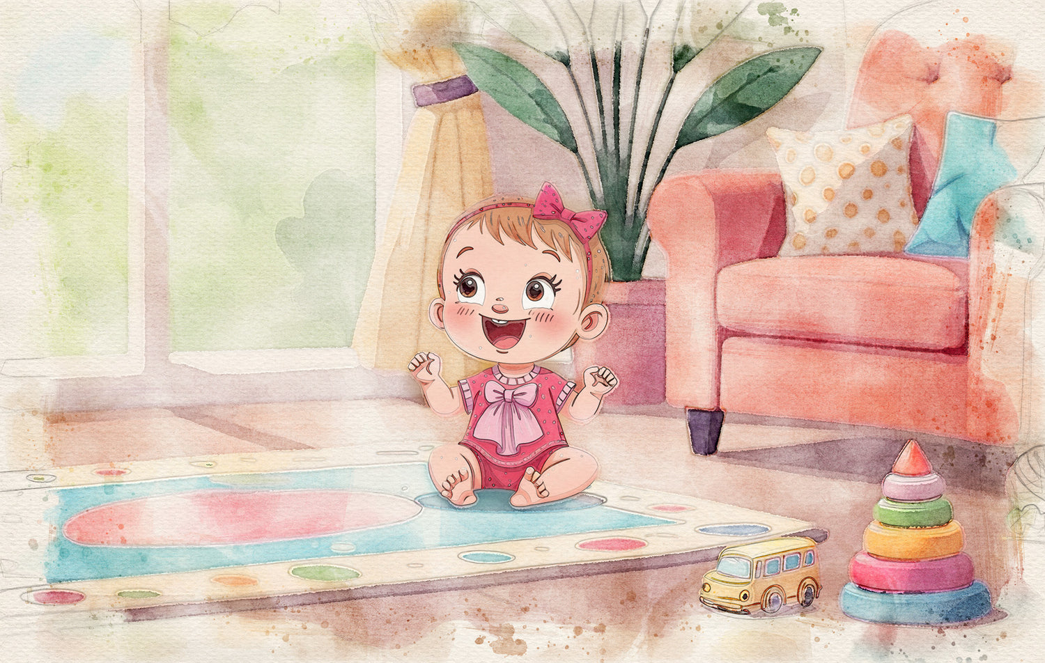 A calm and smiley baby girl who melts hearts wherever she goes. Always ready for a cuddle, her gentle nature brings joy to everyone around her.
